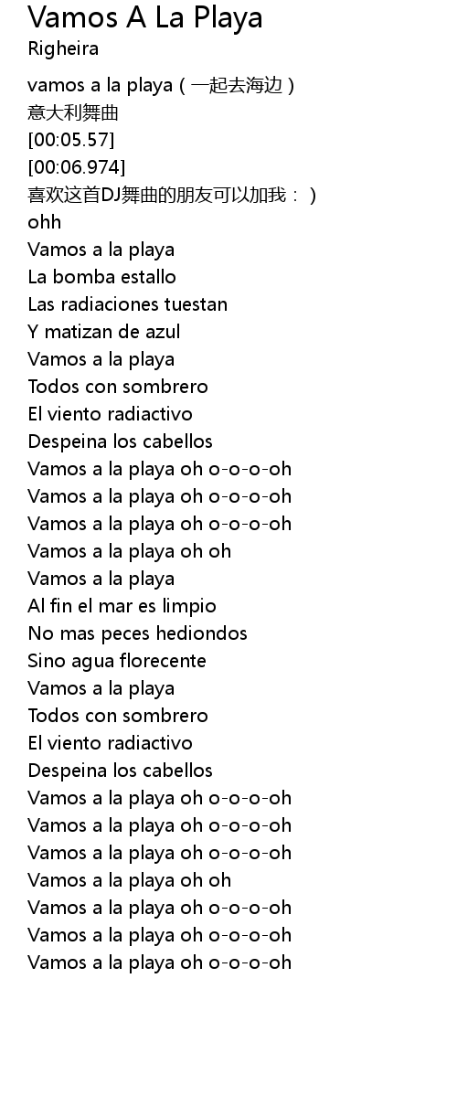 Your Righeira Vamos A La Playa Lyrics picture are be had in this website. Righeira Vamos A La Playa Lyrics are a topic that is being searched for and favored by netizens nowadays. You can Get the Righeira Vamos A La Playa Lyrics here. Download all royalty-free images.